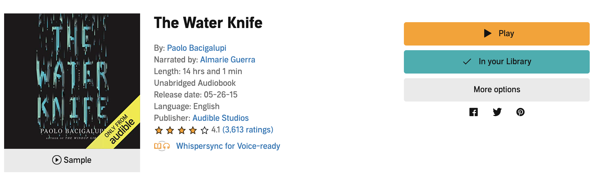 The Water Knife by Paolo Bacigalupi: Narrated by Almarie Guerra
