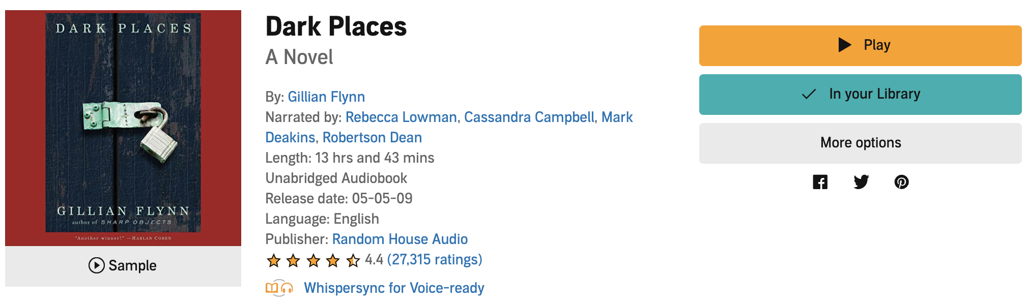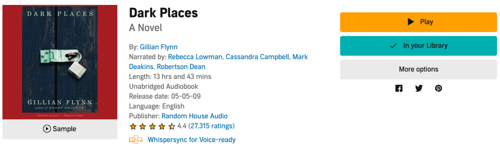 The narrations performed by Rebecca Lowman, Cassandra Campbell, Mark Deakins, and Robertson Dean are fantastic. We experience different characters, at different times, with distinctly different voices…and it’s a nice touch.