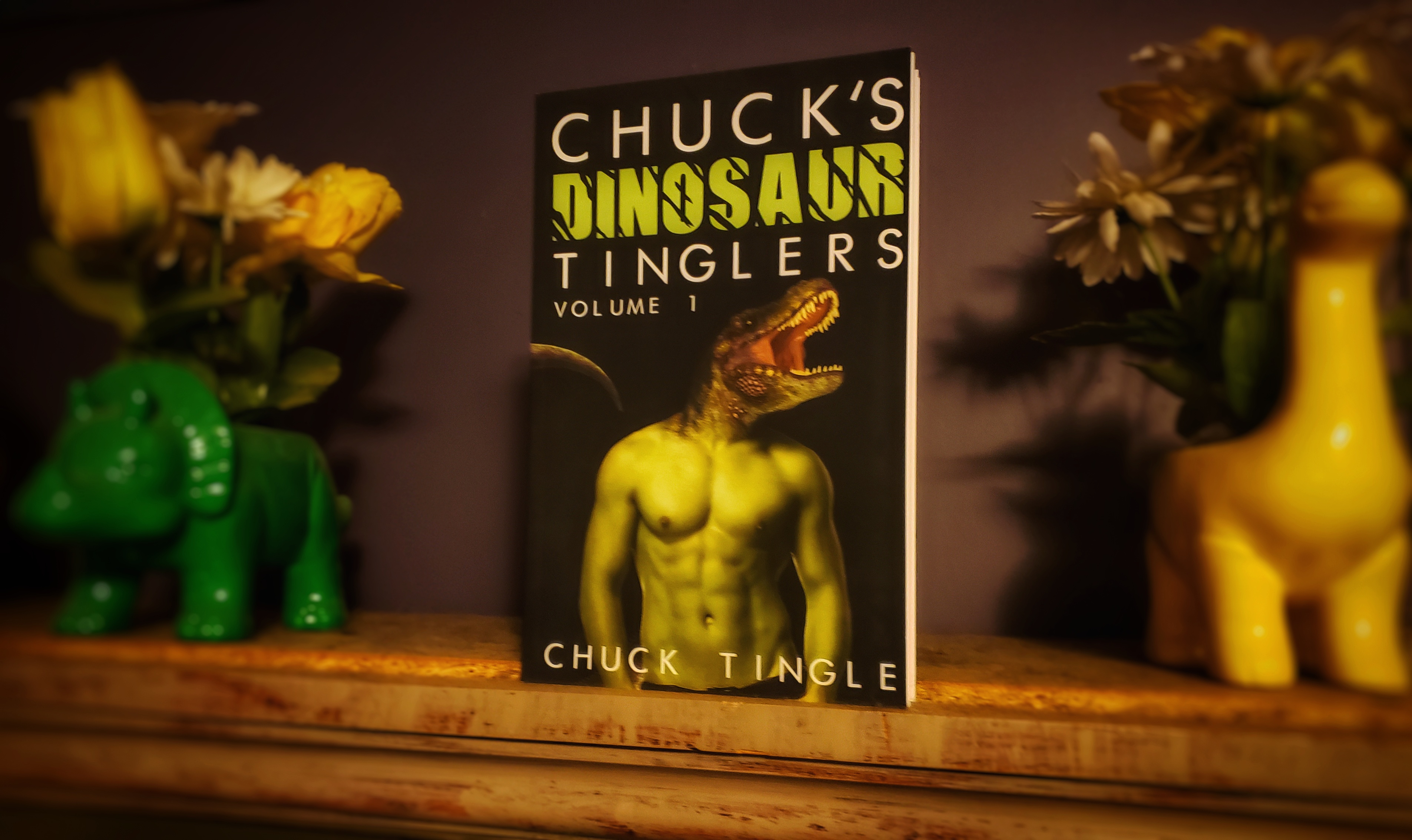 Volume One of Chuck’s Dinosaur Tinglers compiles three previously available stories; My Billionaire Triceratops Craves Gay Ass, Gay T-Rex Law Firm: Executive Boner, and Space Raptor Butt Invasion. If you’re unfamiliar with the brilliant Chuck Tingle and his plethora of tinglers, I’m not sure how you’re accessing this review from the space beneath the rock you’ve been living under for however long.