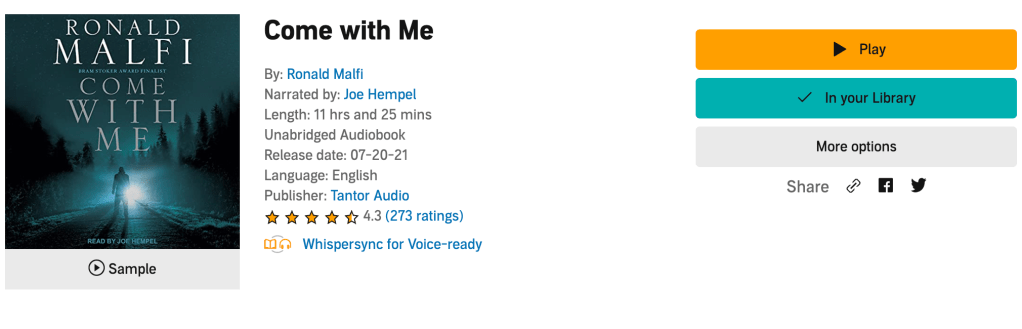 While this isn’t the best of Bentley Little’s work, it is as deeply unsettling and imaginative as anything else he’s written. Elements of body horror and psychological horror meld perfectly with supernatural and spiritual elements to create a narrative that demands the reader/listener not turn away.