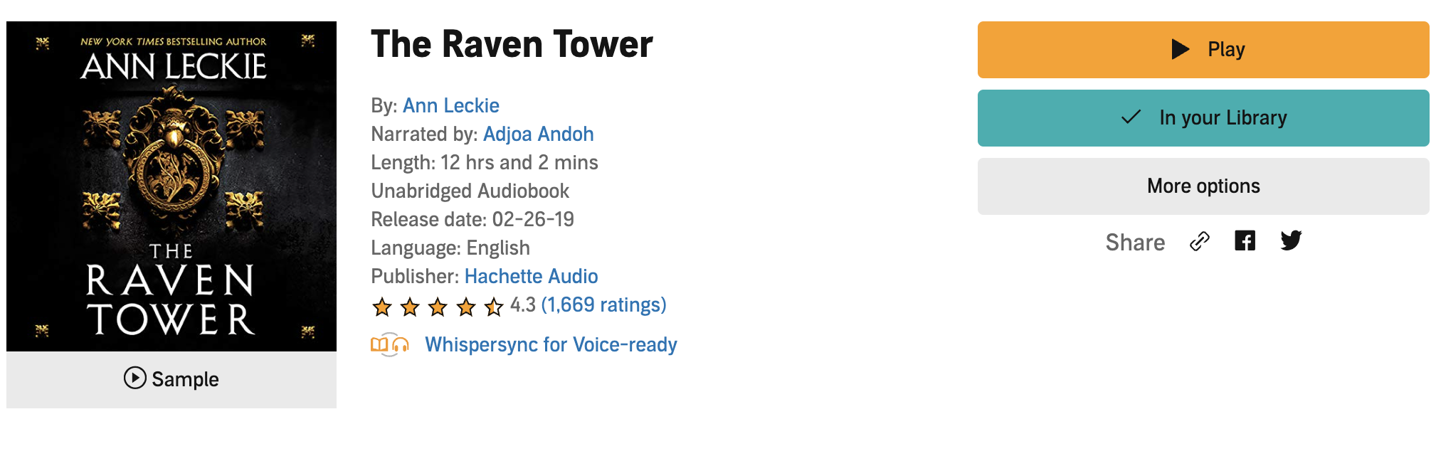 As interesting as the story of court intrigue, murder, and betrayal happens to be, I found myself wanting to hear more about the gods, their machinations, and the history of this world the deeper I delved into the story. Leckie has a knack for creating worlds that beg for the reader’s attention, drawing us in and making us crave more. The Ancillary books had a trilogy that allowed for greater satisfaction of this need, and I’m hoping that this won’t be the last time we visit the world she’s created with The Raven Tower.