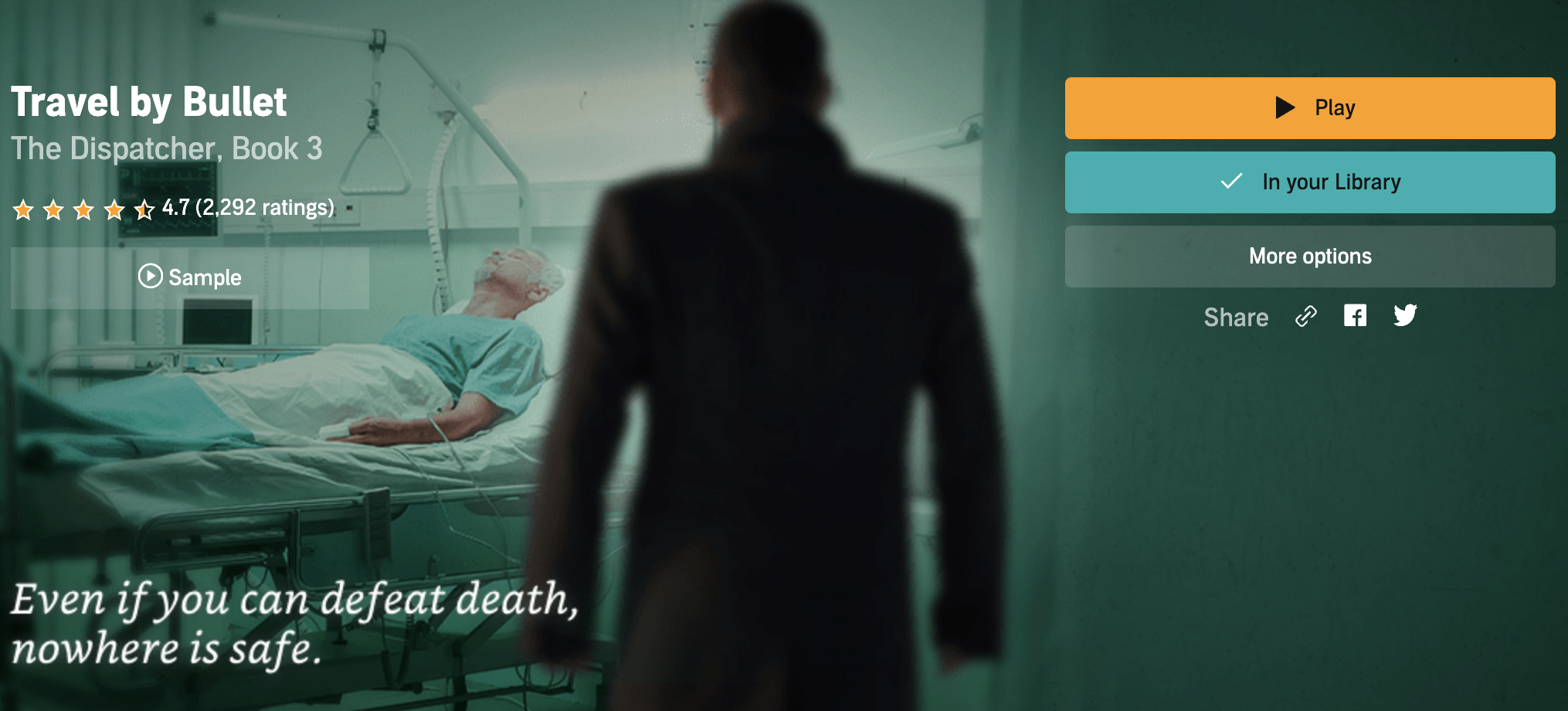 As with the previous two volumes, Zachary Quinto’s narration is superb, lending Tony a uniquely nuanced personality and bringing the other characters (many familiar faces from previous glimpses into the world of The Dispatcher) to life. I hope that Scalzi continues writing these tales and that Quinto continues narrating them because, like Scalzi’s seamless combination of genres, it’s a perfect blend.