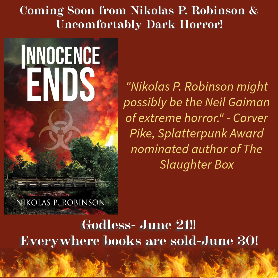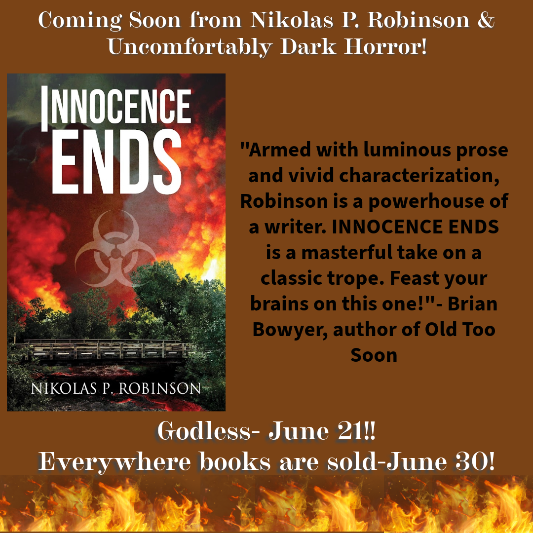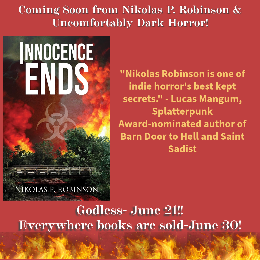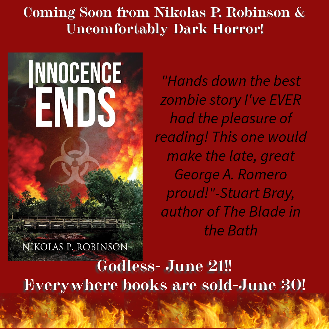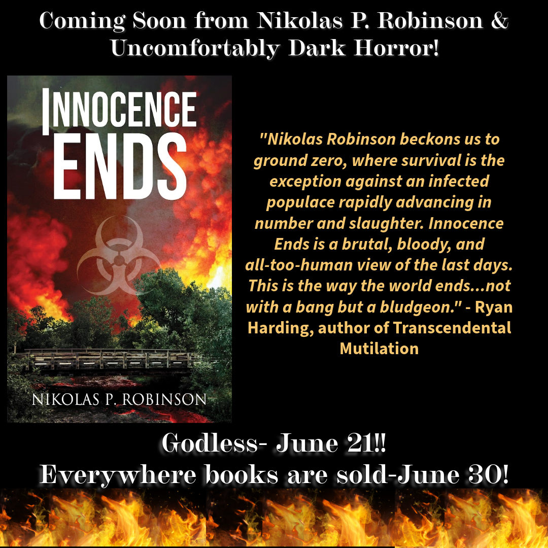 Innocence Ends, which was originally released in August of 2020, is a story of friendship and how far that friendship can be tested. Since its release, it has been one of my most successful titles. It was not, however, successful enough in the opinion of Candace Nola, the founder of Uncomfortably Dark Horror. In late 2023, she asked if I would be willing to remove the existing edition of the novel from publication and allow her to work with me to improve it, slap a brand new cover on it (courtesy of Don Noble), and release it through her publishing house. I agreed, and she quickly got to work. In June of 2024, almost four years from the original release date, the new and improved edition of Innocence Ends found new life.