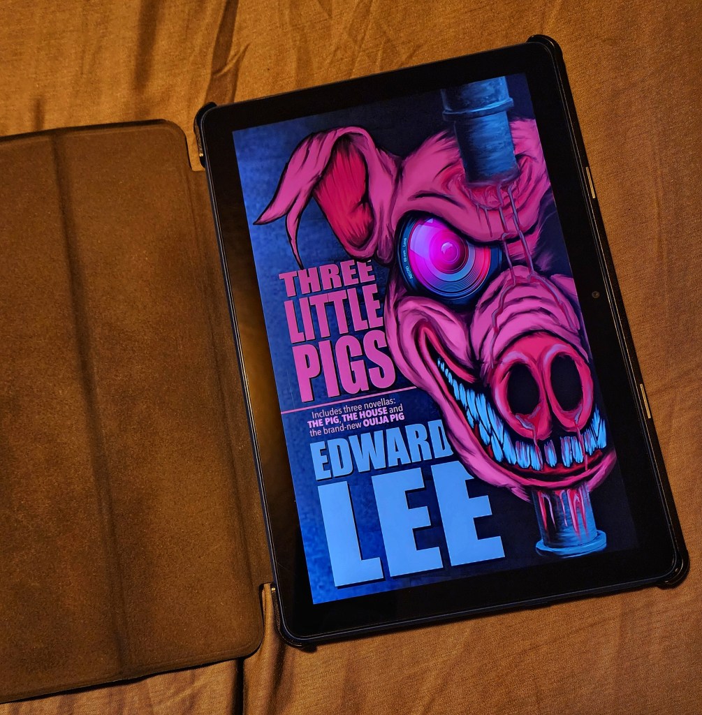 For many years now, my answer to that question has invariably been The Pig by Edward Lee. I won’t include the quote here, because it’s sure to force one algorithm or another to reject my review of this single-volume trilogy. Suffice it to say, it’s irreverent, humorous, captivating, and vile…all things that virtually insist that the reader keep on going. The discerning reader will be satisfied to discover that the rest of the tale is similarly irreverent, humorous, captivating, and vile. I had the pleasure of reading The Pig and The House in a single volume quite some time ago, but this new edition from Evil Cookie Press is a trifecta, in that it includes an additional installment, picking up the loose threads left behind and running with it until anything sane is unraveled. If there’s a trigger warning out there, this volume contains the associated trigger.