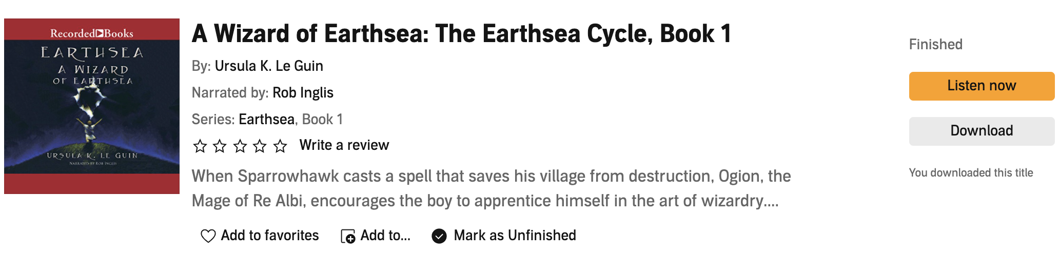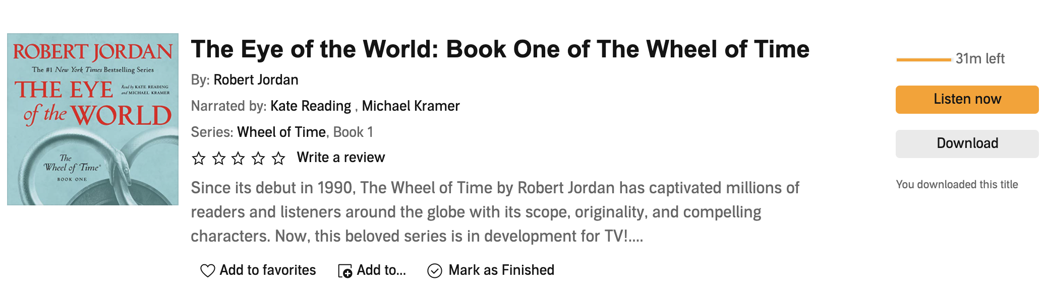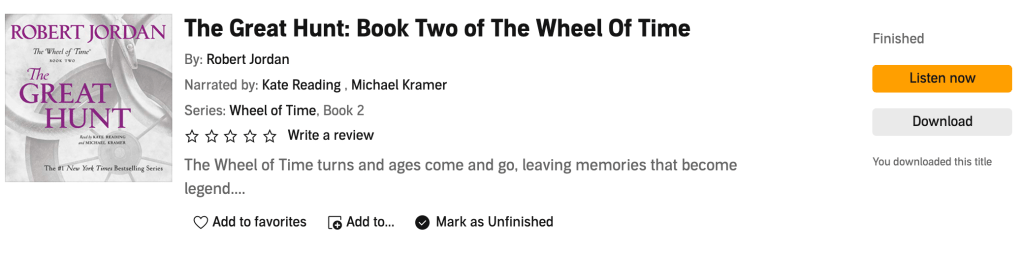 As with the previous four volumes in the series, the narration provided by Kate Reading and Michael Kramer is fantastic, fully bringing the narrative to life and fleshing out the characters in the way the best audiobooks do.