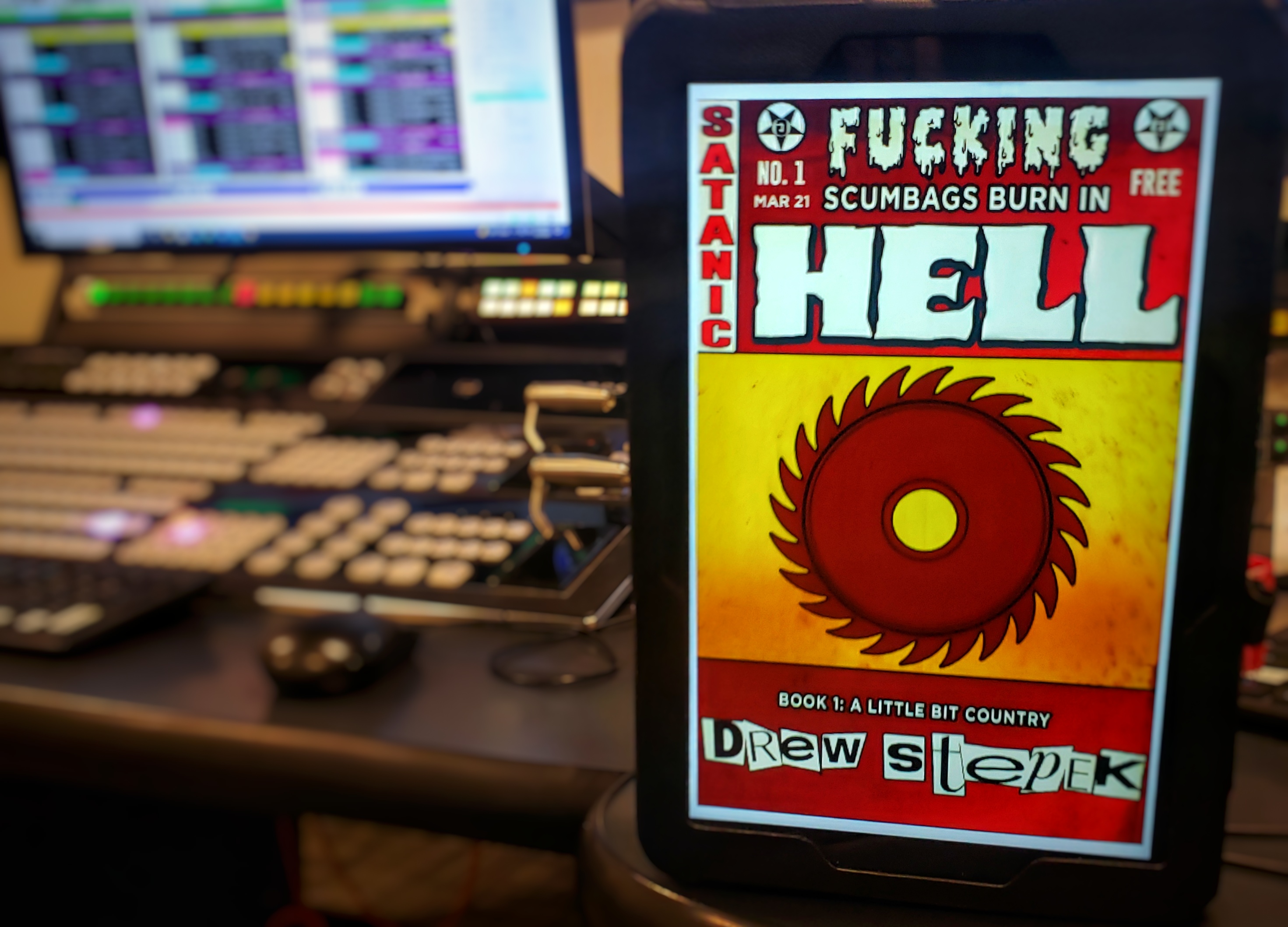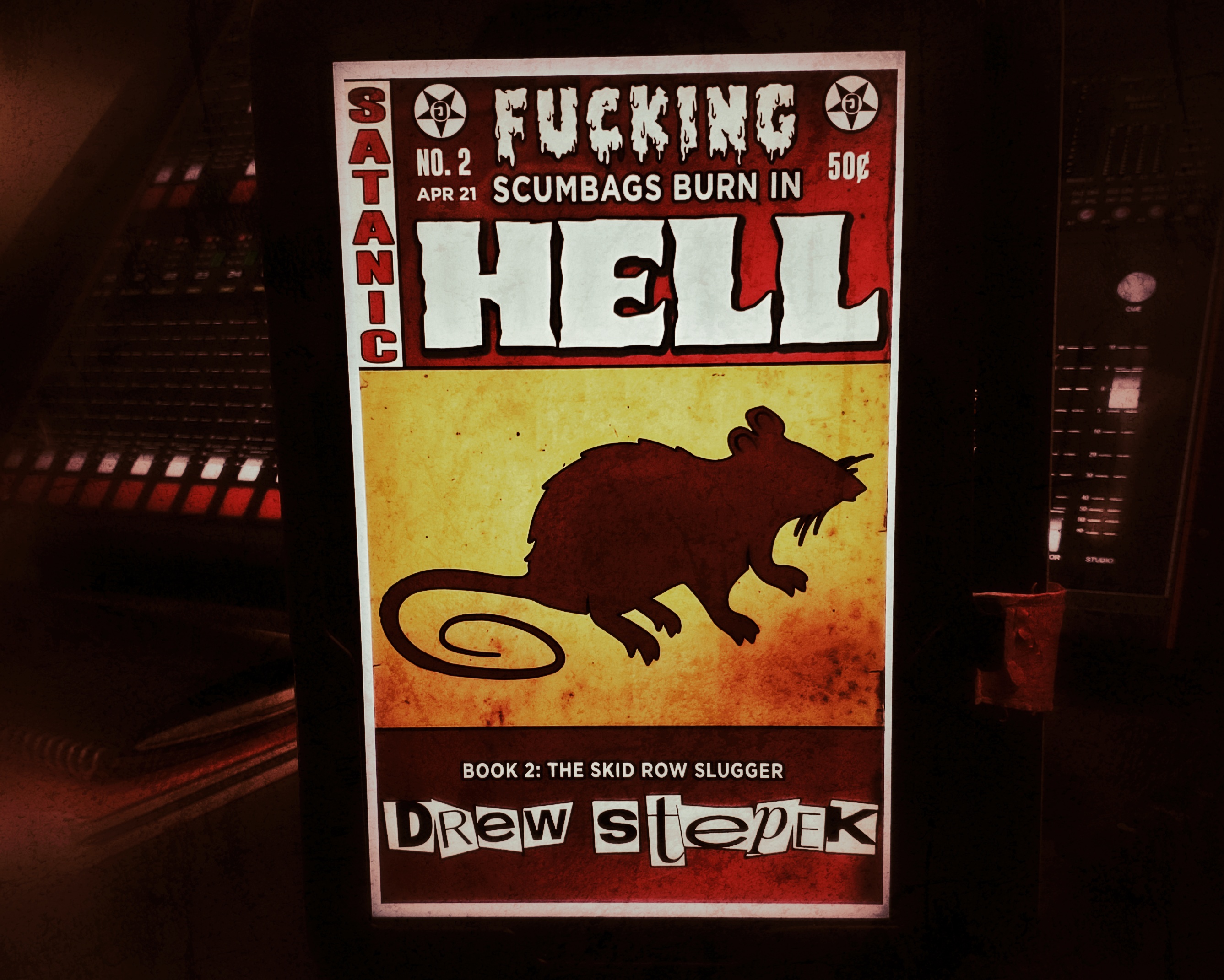 John Wayne Comunale brings his usual irreverent humor and blasphemy to this tale of a working stiff who–like many of us–wishes he could find a shortcut to the life he would rather be living. Sometimes, that might be as easy as pushing someone in front of a bus, which–as it turns out–might be more challenging than you suspect. In this case, the desired shortcut comes in the form of a “Satanic” ritual.
