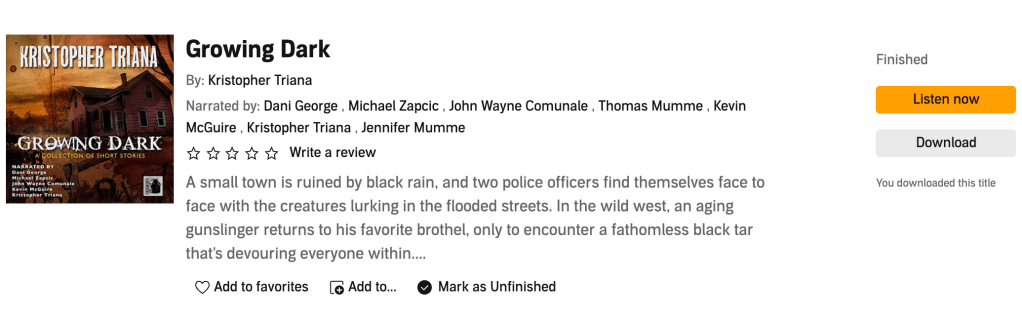 Eric Martin’s delivery as the narrator is superb, and fully captures the literary qualities of Langan’s work.